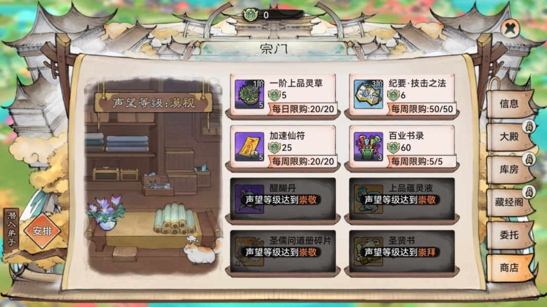 声望等级的提高也关乎着该宗门商店的可兑换奖励,各个宗门的可兑换奖励会有所不同。