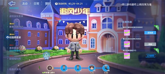 青春无限,踏浪追风,做热血少年!3月29日起,全新福利活动上线,完成任务免费领取全新仲夏之夜男套装,一起冲向美好的明天!