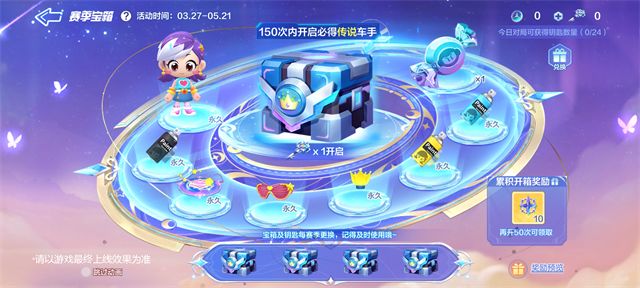 时髦的发型,靓丽的衣裙,时代在改变,装扮也新颖!3月27日起,赛季宝箱奖励全面刷新,赛季宝箱钥匙数量与累计奖励重置,和华丽雯雯开启新一轮的寻宝之旅!