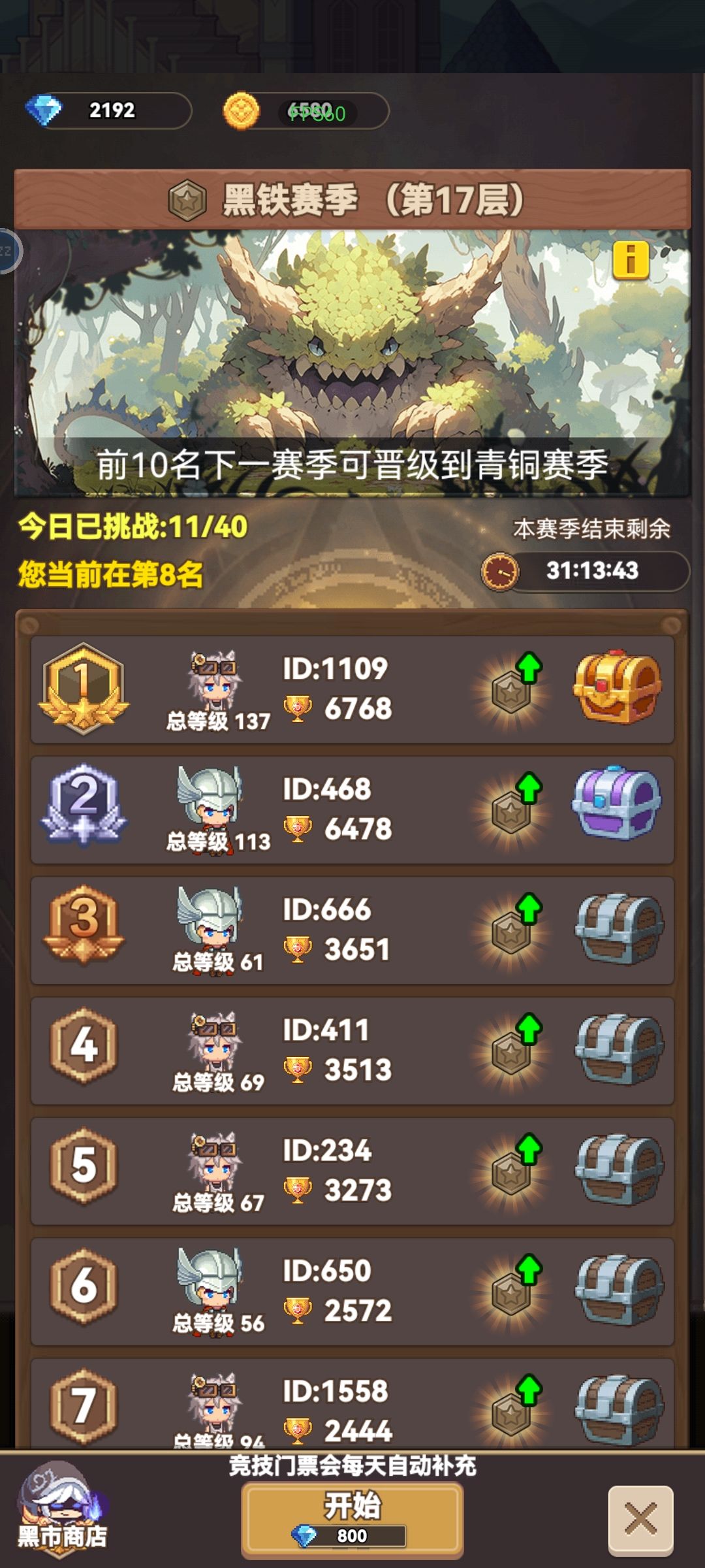 5、竞技场可以用钻石买门票,提高排名有奖励