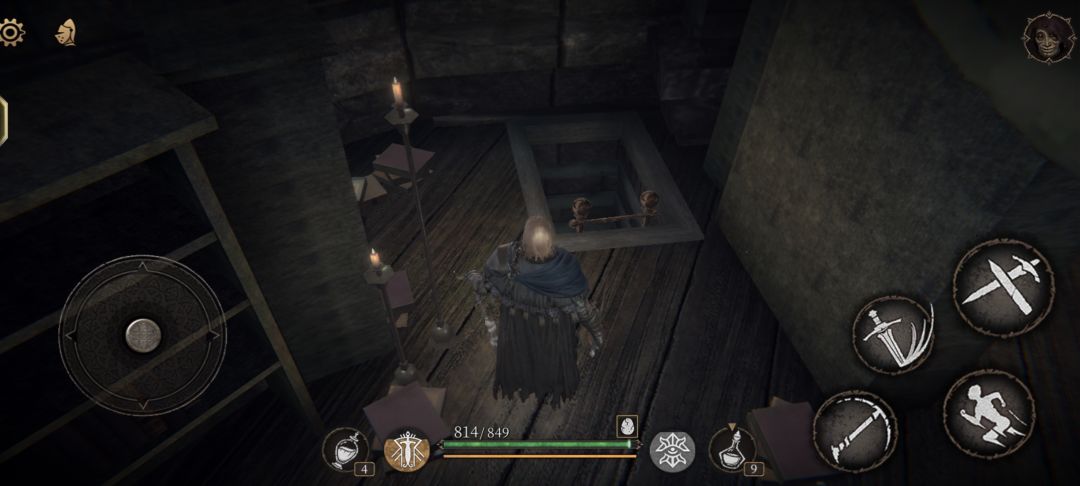 首先来到一层电梯处:看图2;坐电梯往上走,走到图3的位置,有一个宝箱和一个难打的怪的房间,有怪建议绕过去,就一条路走到图4爬梯处,爬上来左转是个书房样式的房间,见图5,这个房间的右边有个往下爬的梯子,见图6,然后走到图7的位置,可以通过这个拱桥走到对面,然后慢慢跳下去,走到图8的位置,这里正常是有俩个弓箭手的,必须先打掉,需要飞刀或火罐,然后视角往下调整好,这里是可以慢慢跳下去的,需要小心谨慎,不然很容易摔④,跳到图9的位置就可以看见宝箱,然后还要小心的往下跳,最后就可以开启此宝箱了。