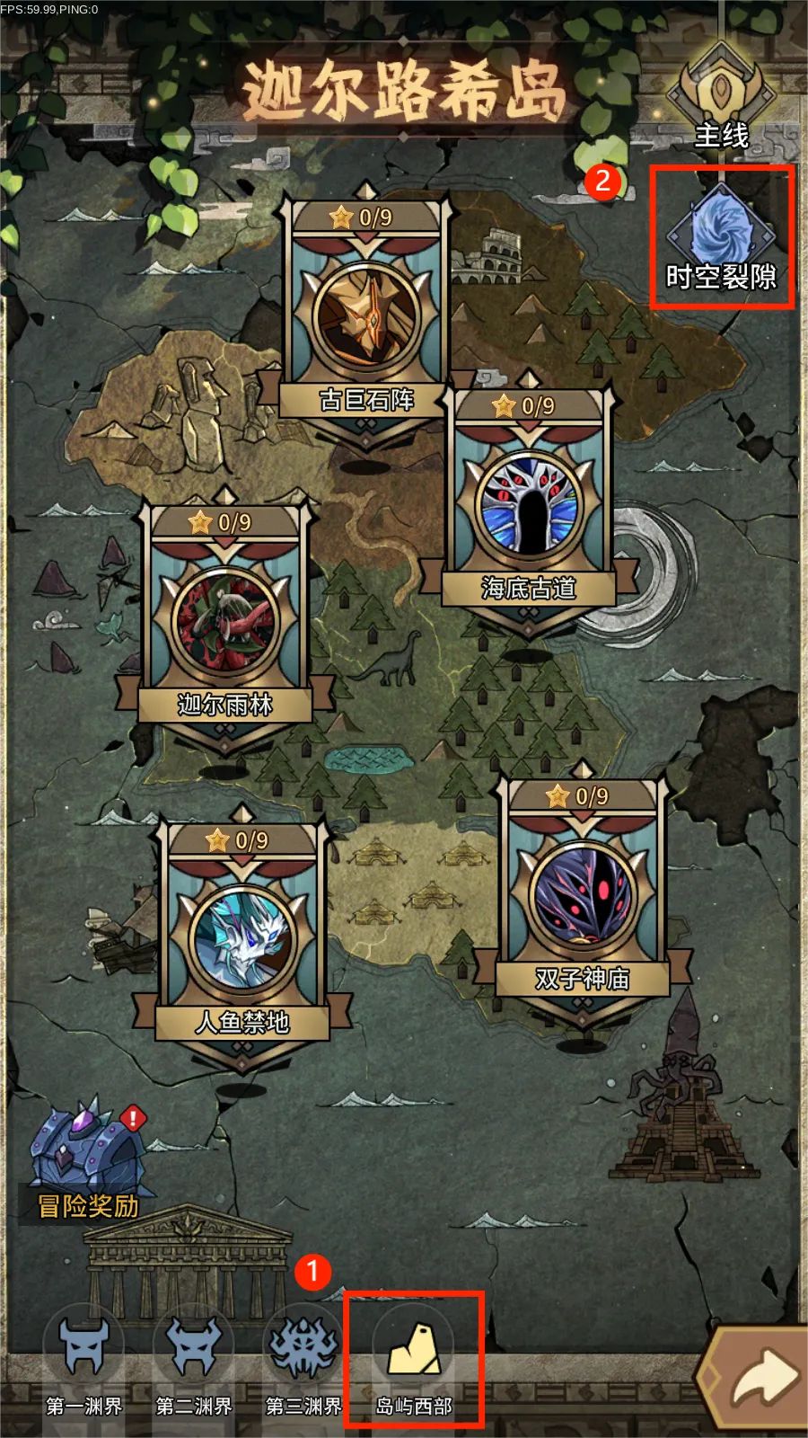 依次点击要塞正中的深渊入口 - 下方岛屿西部分页 - 右上角的时空裂隙图标,即可进入时空裂隙玩法。