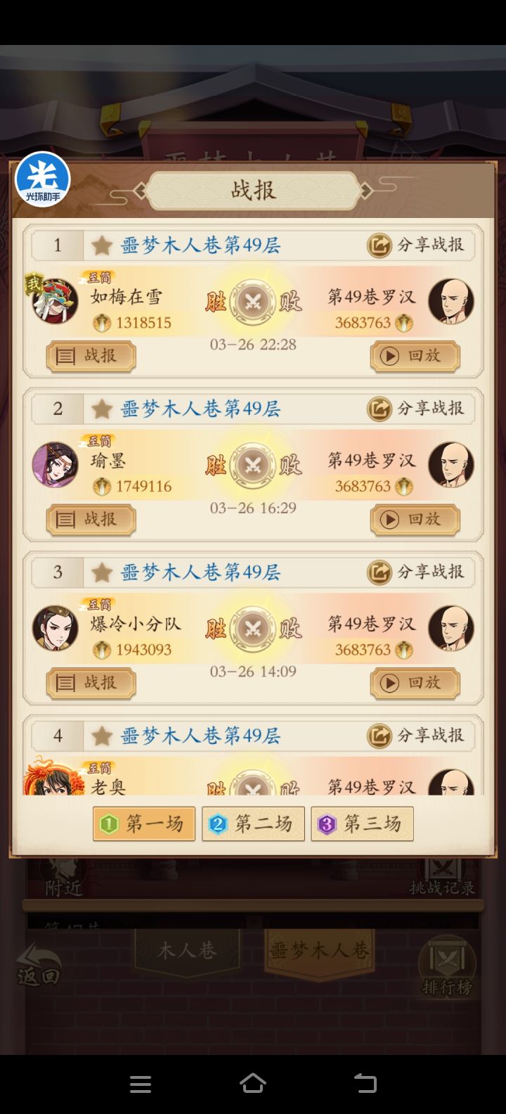 49层:第一场吃吸内强度,配好后猛点能过,二、三场我一次过,没得调。次数限制进不去,明天补图。