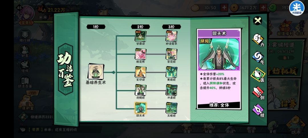 可以看到不管血量差距,曲扣除和回复的都是固定值。所以这就给我们用曲玲陵的一个思路,装备除了曲玲陵追求高生命,其他人都尽量不加生命属性,确保曲血量高,前排主要堆防,也不堆血。曲的扣血正好触发阴阳功法回天术的要求。同时曲的扣血和回血都受治疗量提升而提升,比如一开始扣8k血回2k血5次,升一级加了治疗效果10%就会变成扣8.8k,回2.2k血5次。