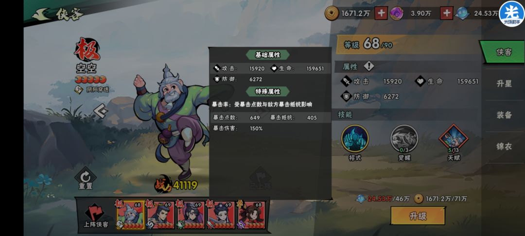 空空的倍率为150%,此时暴击点数为649