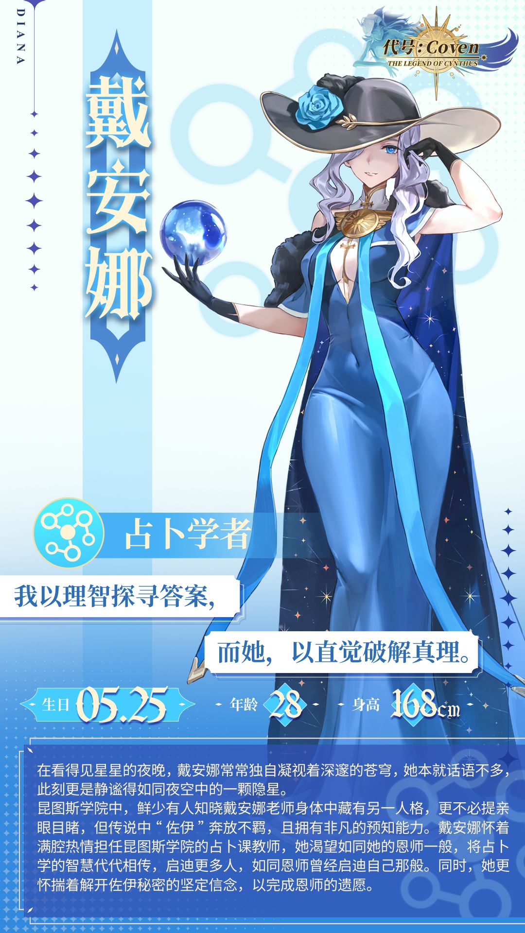 今天为大家带来的情报,关乎一位充满神秘色彩的占卜学教师——戴安娜。