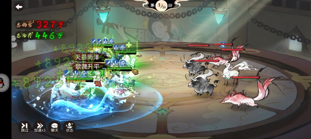 这一套弥补了敖天变身结束后的疲软,让敖在人形态也有不错的输出,煞刑战帖的被动加攻击也适合兵修攻击力成长一般的短板。