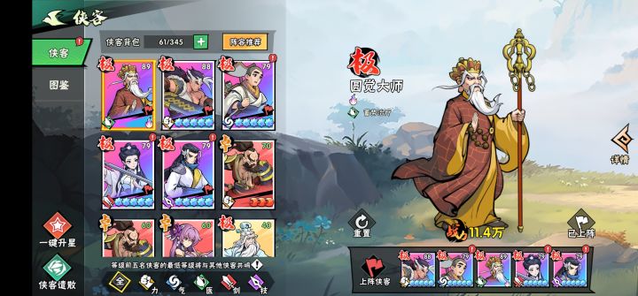 阵容方面新手起步抽到什么卡就用什么卡,不用太在意,后面根据自己的能力来确定阵容,如果走蓄力流需要手动,主 c 圆觉。所有资源首先给到圆觉玩单核,后面搭配其他侠客,简单说下,首先在力系里面,在没有东升跟升龙的前提下我强力推荐空空。如果不换升龙跟东升可以一直待下去。风系里面主推荐玄龄,再没有霍东阁出来的前提下,玄龄在风系里面可以算上 T0 位置。再后来就是医系,如果蓄力流手动玩家就选圆觉,自动玩家曲玲儿或者竹叶姬都可以,这个因人而异。当然再没有秦真限定卡出来之前这样配就可以了。剑系里面,我主推荐白灵儿,这里会有人说上官南也不错啊。的确不错,但是在培养概率上面说,白灵儿节省成本优先于上官,当然大氪玩家不必在意。综合来说就是 后期如果乔峰出来或者有东升多的情况下可以替换空空,目前就空空带到死就行了。后面风系换霍东阁,不换就玄龄带到死,医系 手动蓄力流圆觉,自动就 0 曲玲儿、竹叶姬就可以了。技系就看你后面弄不弄限定卡王重阳,不弄后期换个风满楼或者沈清音都可以。基本就是这样的阵容搭配。关于技能搭配其他博主已经出了攻略,这里不再过多赘述。至于打冠绝的话。还是主 c 风系玄龄配疾风撕裂败絮圆缺打穿透效果。好了!我的分享到此为止。谢谢大家!