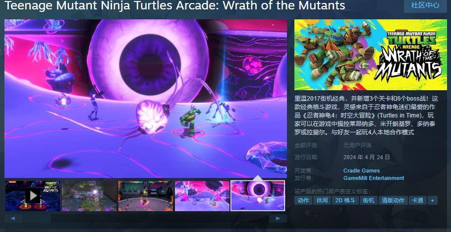 今日(3月27日),街机游戏《忍者神龟4:时空大冒险》将于4月24日正式发售,游戏暂不支持中文,感兴趣的玩家可以点击此处进入商店页面。