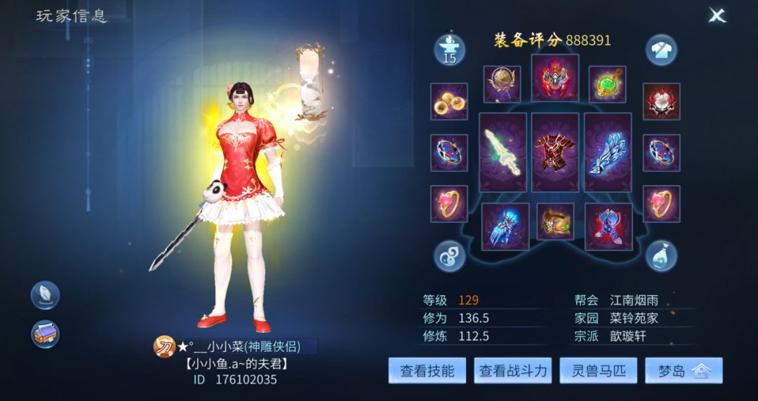 我们小小菜特别的强,卡级129就已经4阶仙家了,有很多套装备,操作也是十分的6,走位风骚,着装也是独具一格。