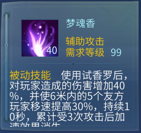 最后就是搭配我们魅者60修天赋梦魂香,对玩家造成伤害增加40%。如果武器或者仙家法宝带有克职业词条,搭配我们魅者100绝黄鹤降防降元素,可以打出巨额爆发。