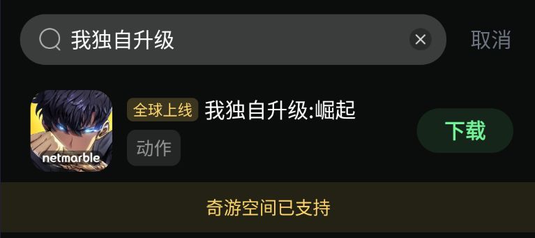 2、奇游内搜索【我独自升级】即可下载游戏