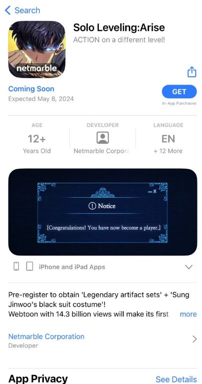 3、拥有苹果泰国id的小伙伴直接登录账号后在AppStore搜索【Solo Leveling:Arise】即可~