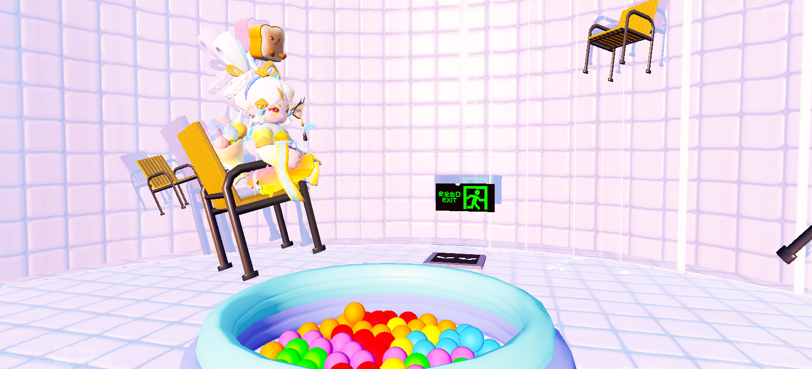 推开车厢另一端的大门,星妹坠入了第四层梦境。这里是巨大的泳池底部,中间放着装满多彩海洋球的容器,四周漂浮着许多把椅子。
