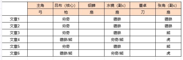 己方队伍核心吕布输出,所有自选传奇优先穷奇,自选普通优先熊,穷奇等级提高增加吕布生命及增伤,熊给吕布提供高加成命中,这是我个人养成吕布的思路。所有资源优先给吕布,其次培养副c,水镜和张角,剩下的有啥带啥。
