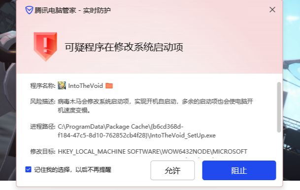 Q1:《驱入虚空》PC启动器在安装过程杀毒软件出现了拦截提示,如下图