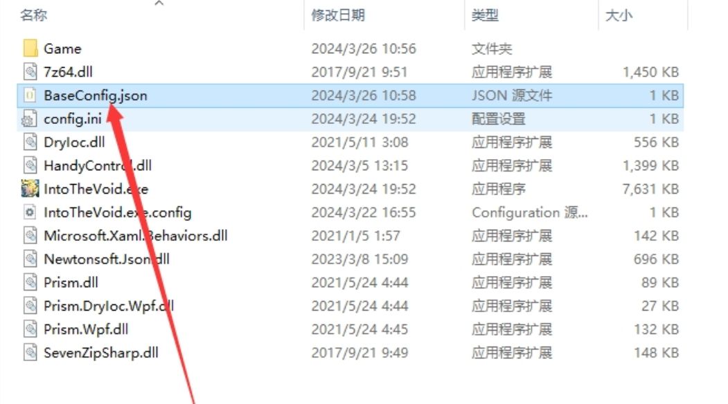 A:先检查杀毒是否关闭,重新打开启动器,尝试无果则需删掉下图所示文件(BaseConfig.json)后,关闭启动器重新下载。