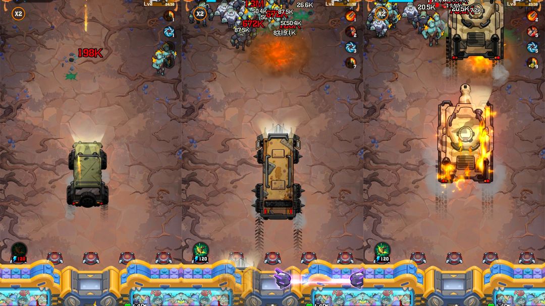 🚂「钢铁洪流」坦克从左到右依次发车,对全屏敌人进行碾压攻击