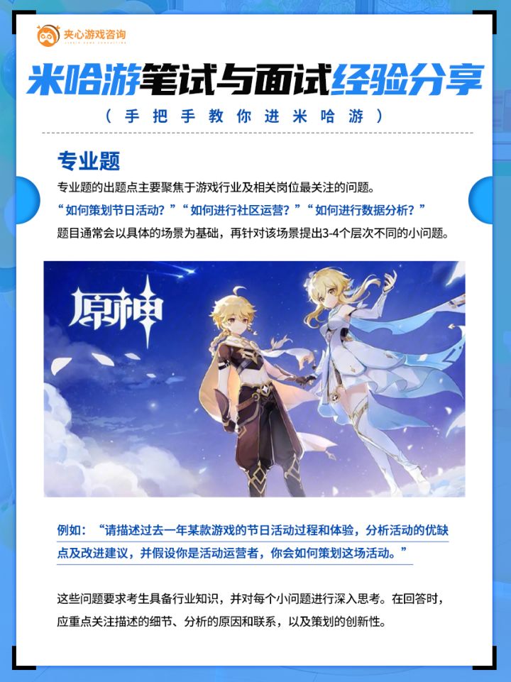 专业题的出题点主要聚焦于游戏行业及相关岗位最关注的问题“如何策划节日活动?”“如何进行社区运营?”“如何进行数据分析?”