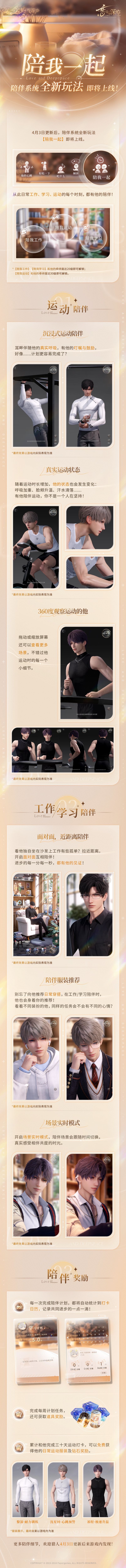 2.为他推荐的日常服装、饰品,他都会在陪你一起时穿着,给你带去完成任务的好心情!