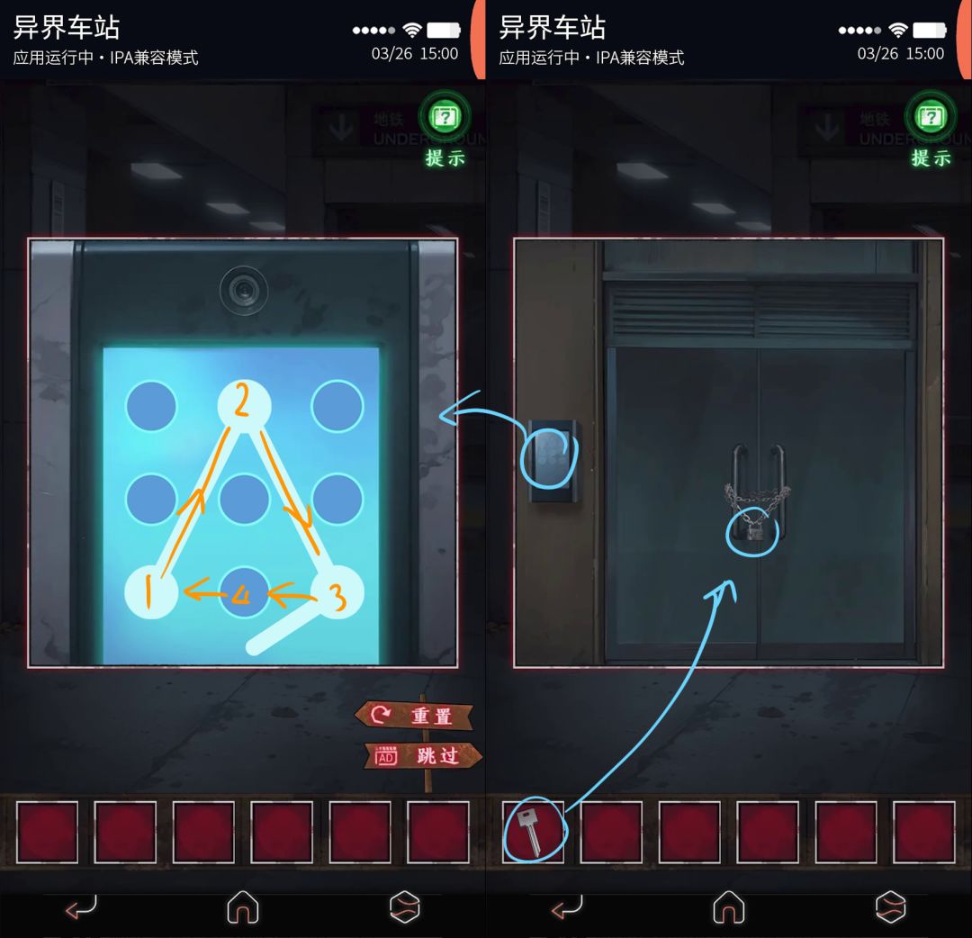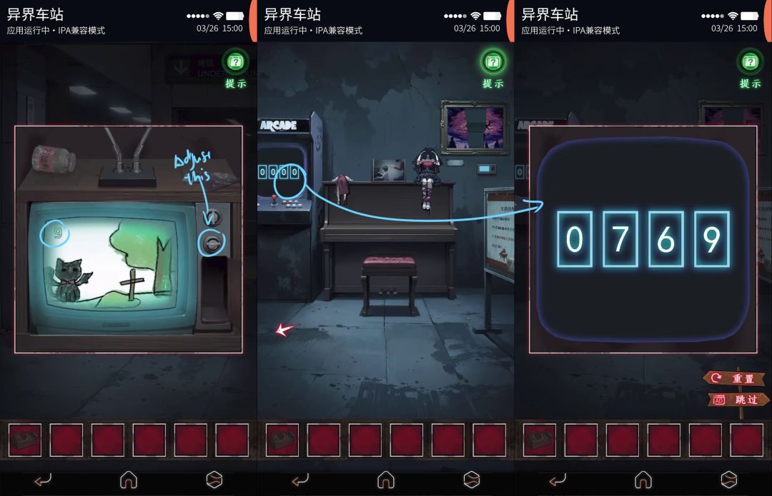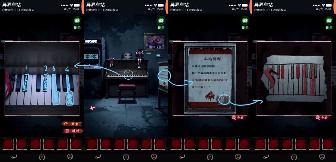 使用获得的唱片与摇把装载入留声机,得到锤子;使用锤子击破站台大门。