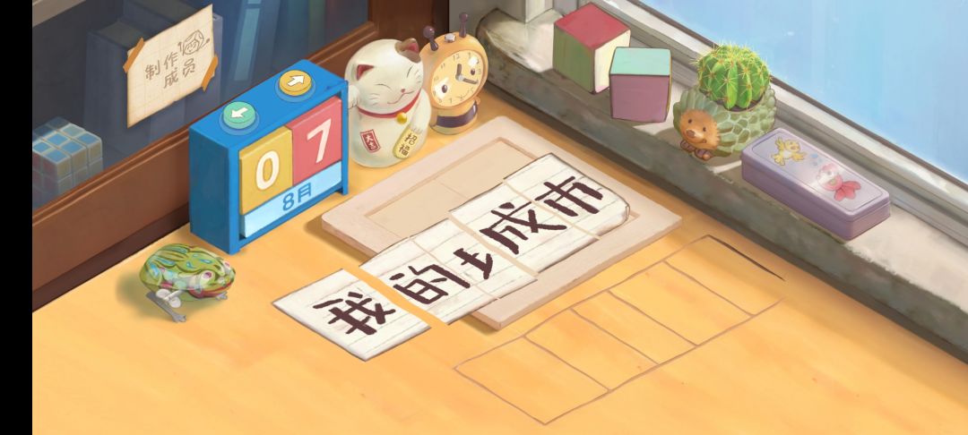最后把字移开有格子,正确放置会结算。(不给就多来几遍)