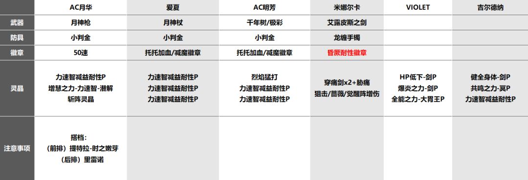 2:3名以上冥值角色时:携带月界/烟浪防具提供50%耐性+角色自身的20%耐性+宝箱开到的眩晕耐性徽章,数值大于30%即可;(本部有个60%的耐性徽章)