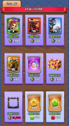 在公会商店可花费荣誉之证购买所需要的道具,各种等级的卡牌,还可用低于目标的符石量换取对应颜色的符石,公会商店每7天刷新一次。