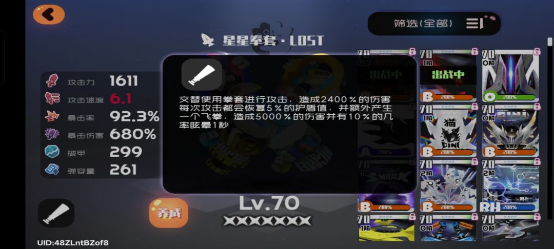 然后为了保证晚冬的生存,武器最好佩戴星星挙套,他的5%的护盾能够很好保证晚冬的生存