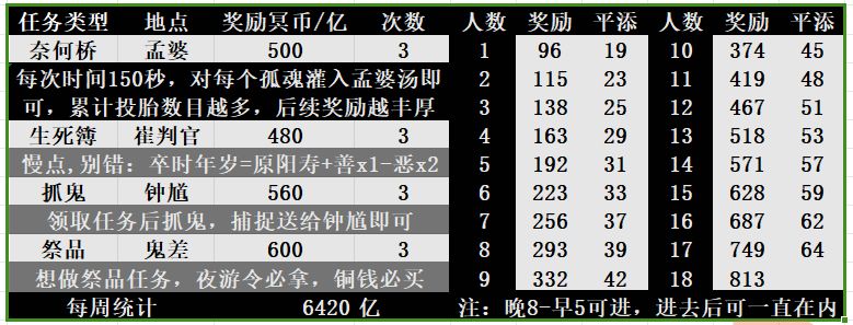 - 每周任务奖励:忘记是什么时候刷新地府任务的了?后续看看