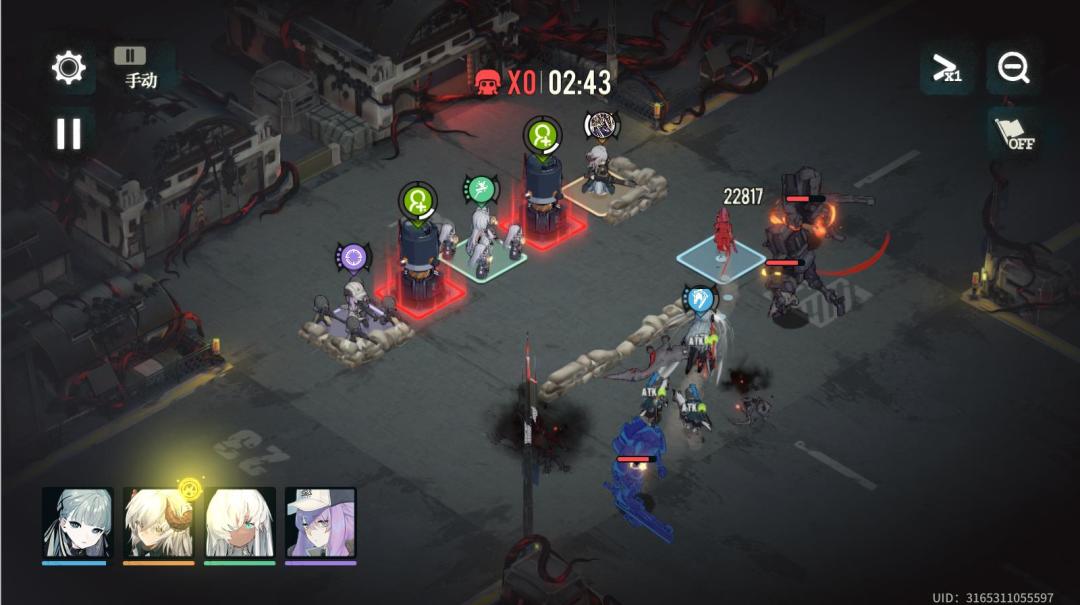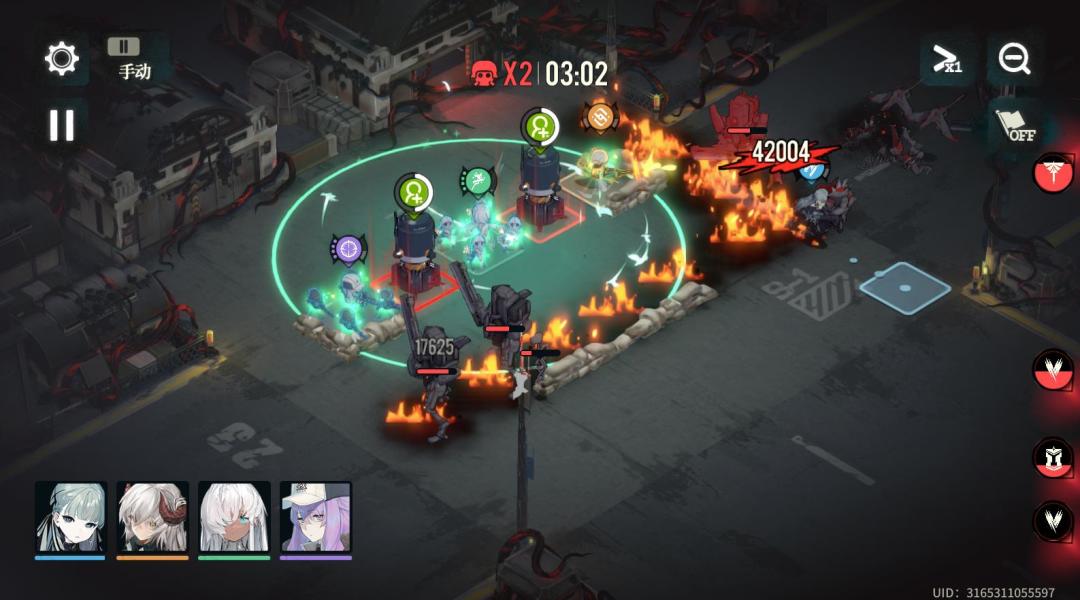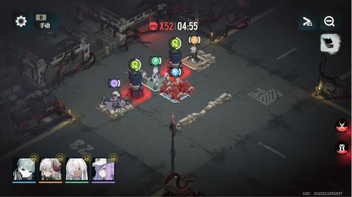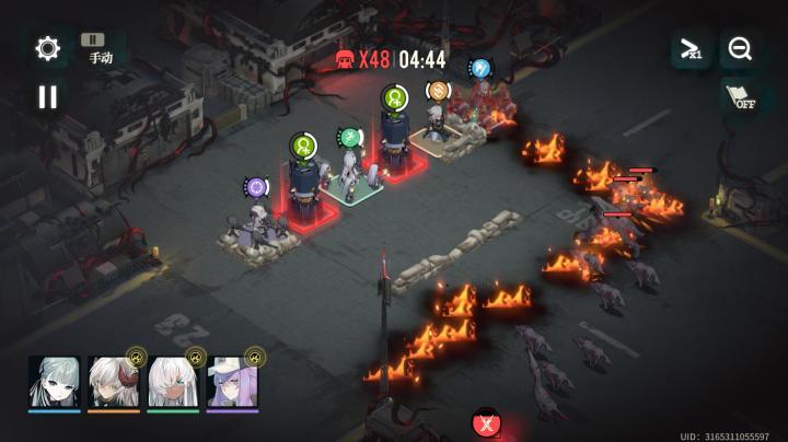 我的打法是用风信子的速度和技能到处拉扯,吸引仇恨。其余2个远程和治疗站位不动。速度选择1,带治疗技能。