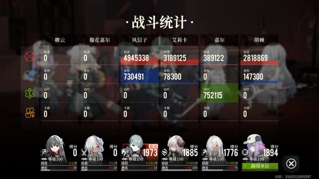 这张图开始打的时候我也是自动,发现不能过,试了几次。选择了一个合适自己的打法,可以注意到我的荆棘是助战的,我没有金色的狙击。等级100级,科技基本算是点满。所以不代表普遍性,就是一个思路参考