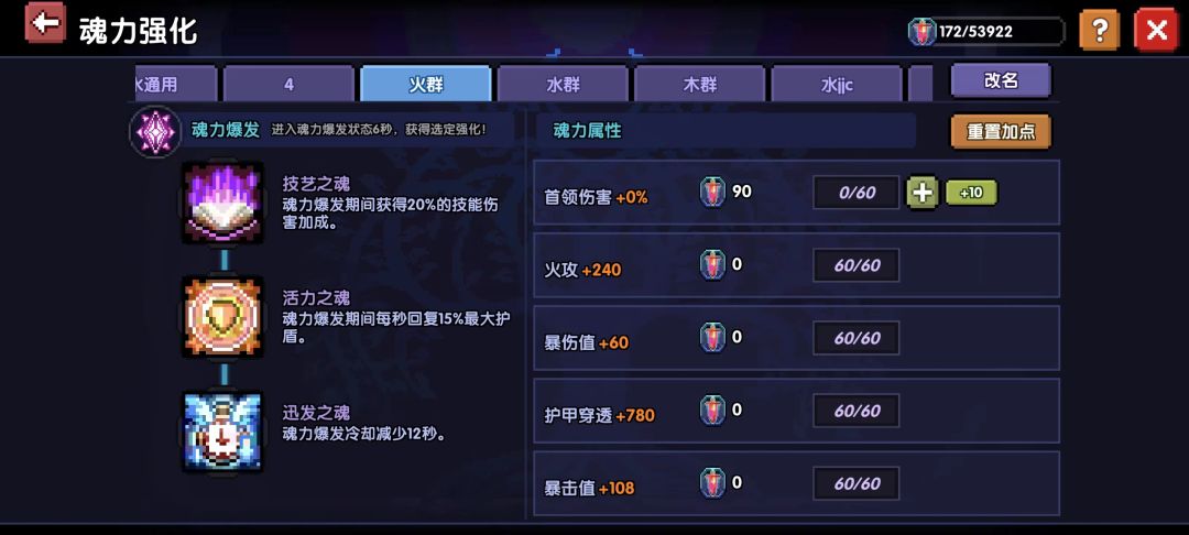 推荐洗练:火攻/暴伤/攻强/暴击值