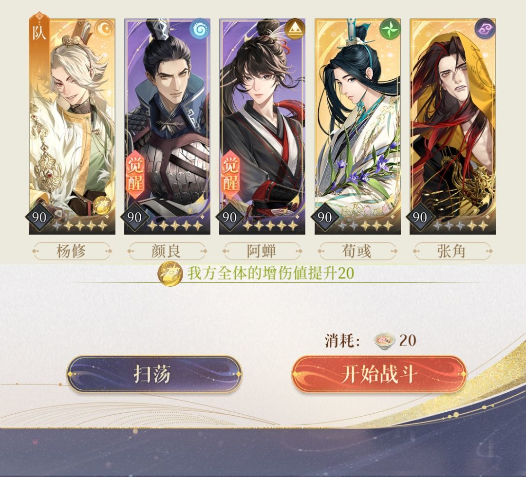 3水阴,颜良普攻,张角大,其余防