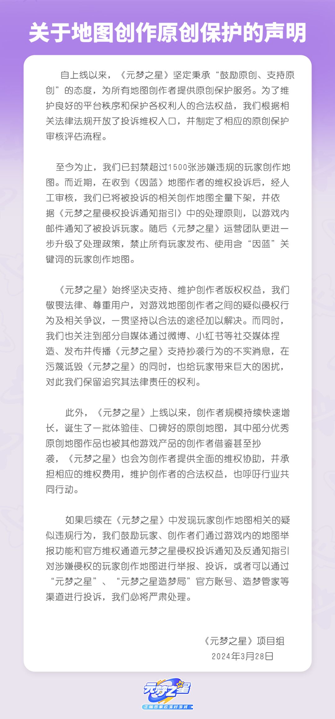 关于地图创作原创保护的声明