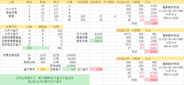 另外根据运算,每1881尘可以替代50个徽章盒,也就是如果你有1881尘,你只需要691就能拿下。