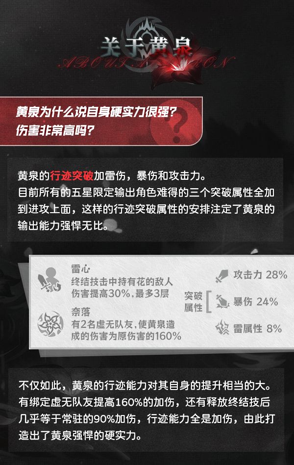 黄泉马上登场了,这篇攻略就让我们讨论一下这位剧情和战斗强度双开花的领军角色