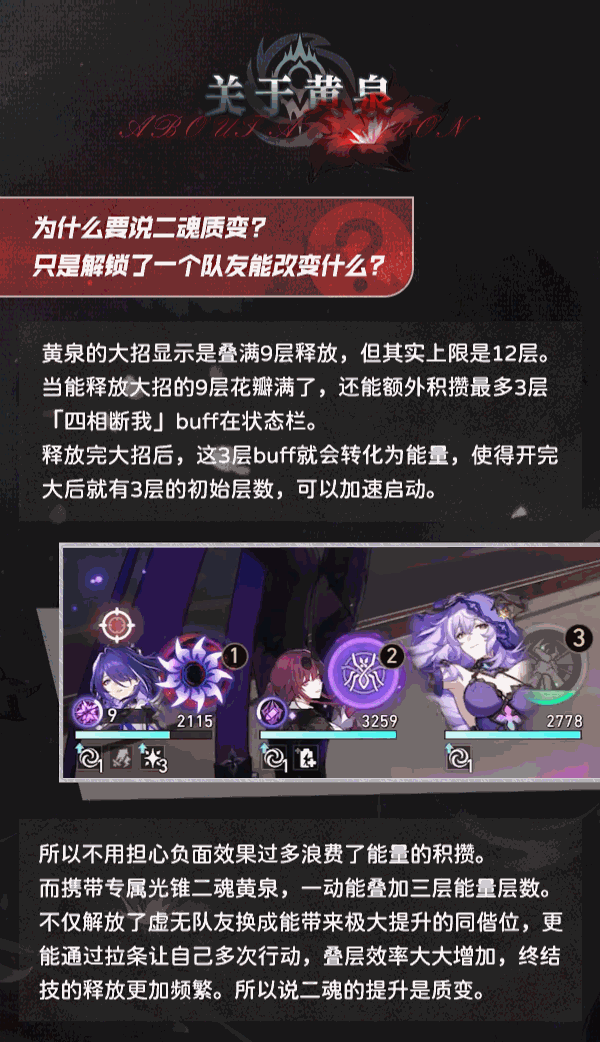 反而二魂黄泉有专属光锥之后仅一动就能叠加三层的能量层数
