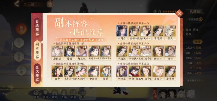 举例:同样的群攻卡,墨子无论是天命,输出,防御都远胜于嬴政,所以群攻的代表就由嬴政转向了墨子,为什么不直接推荐养墨子呢?很简单抽不到啊!下混池捞一个墨子简直难以想象,所以又说回刚刚的话题,新手只能靠运气来赌up池,up的名士pve,pvp有用就是血赚(去年韩信),今年庄周就对新手pve没什么作用,pvp实战发现核心技能在6星也是挺绝望的。