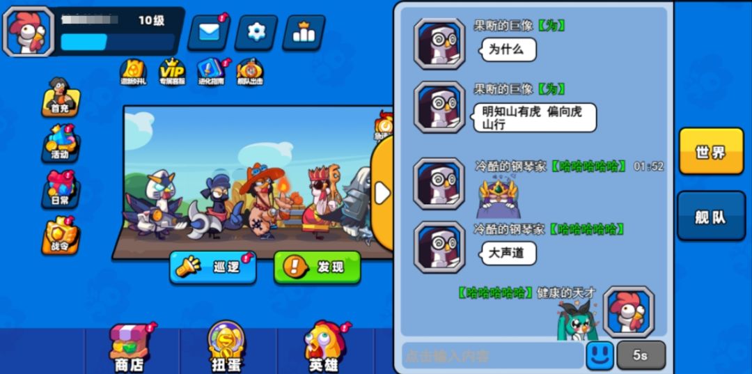 为方便各位队长交流游戏内容,分享攻略心得,实验室特此将光速通讯仪研制推出!还贴心地区分了“世界”频道与“舰队”频道,更加便利!
