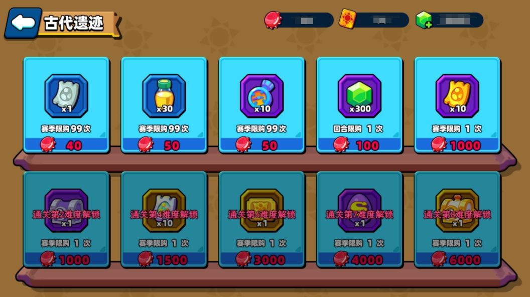 ●降低了【遗迹商店】中部分奖励的难度解锁要求