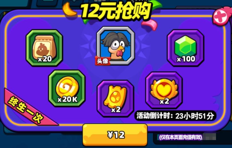 ●更新后将关闭1元礼包,新增12元抢购礼包(限购1次)