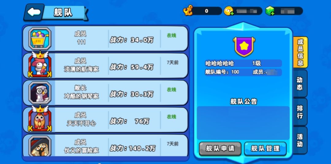 注:【舰队】开启条件为队长等级8级