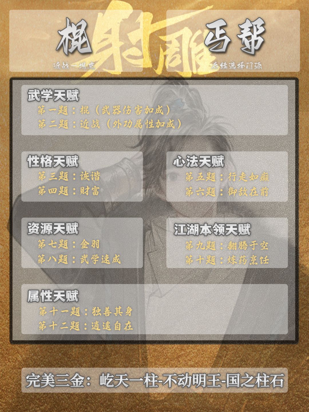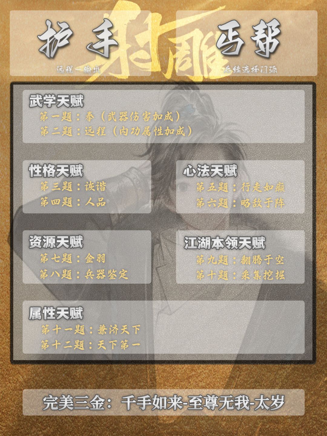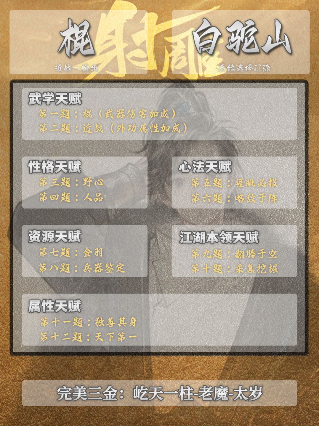 12道题对应了游戏内的各个方面【武学/性格/心法/资源/本领/属性】