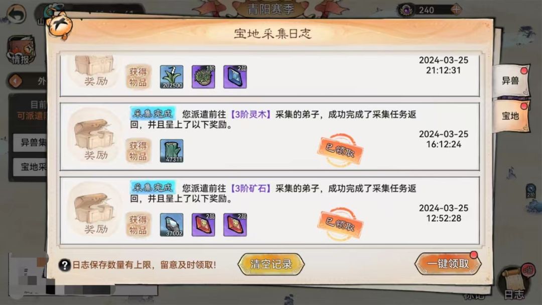 PS:用于异兽讨伐的弟子将不能派遣宝地采集,反之亦是。