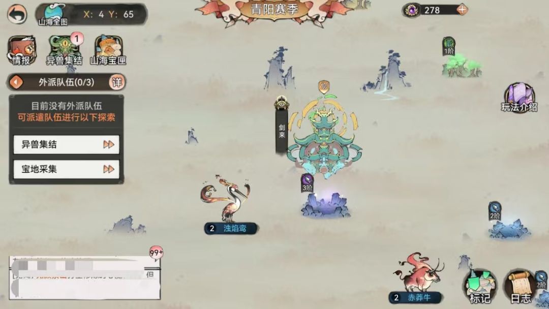 山海世界玩法以赛季的形式开启,赛季期间会在山海地图上刷新各种品阶的异兽和宝地,仙盟成员可以进行讨伐与采集。