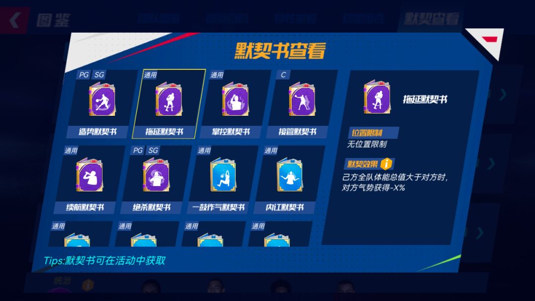 部分紫色默契书去除位置装配限制。现在,续航、掌控和拖延这三个默契书将不再受位置的限制,让球员可以更加自由地佩戴提升!