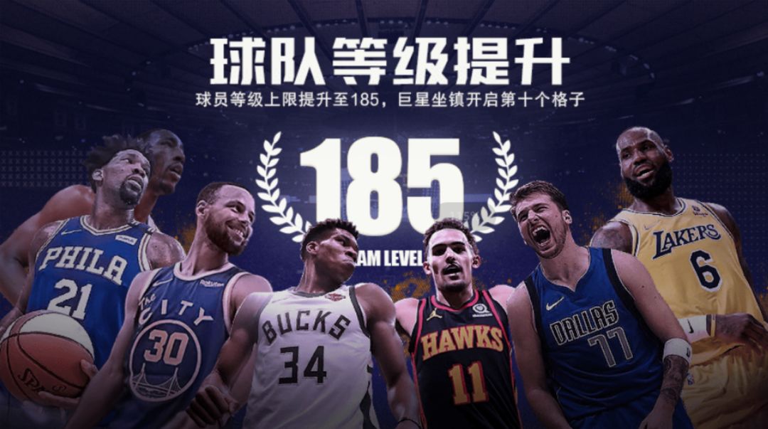 球员等级上限提升至185,王朝之路奖励开启至185级奖励,巨星坐镇开启第十个格子。