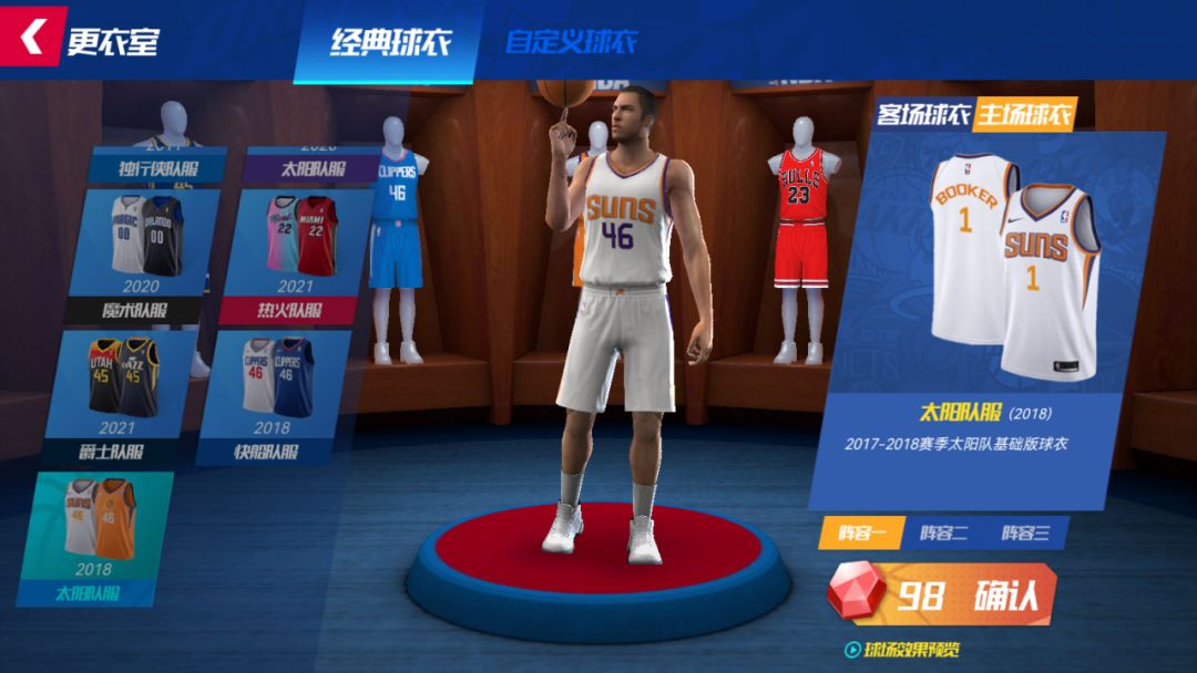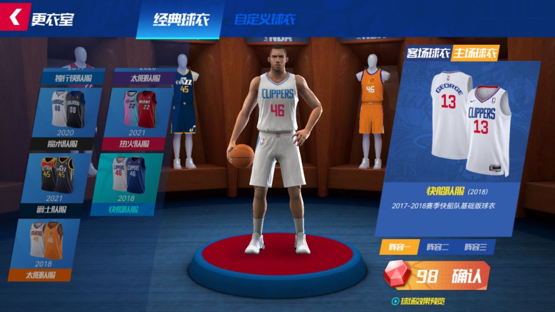 更衣室系统新增17-18赛季快船和太阳队的主客场球衣,均只需要98宝石即可解锁,还可解锁其他心仪球队球衣,换上专属球衣拿下总冠军吧!(首页【阵容】-左上角【更衣室】即可进入)