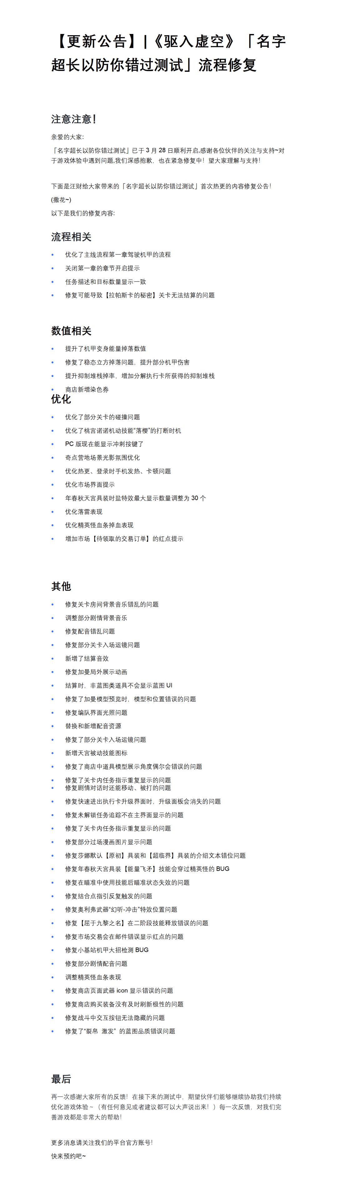 【停服更新公告】|《驱入虚空》测试流程修复
